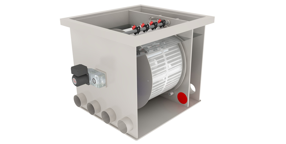 Voda z jazierka preteká cez jemné filtračné sito v rotujúcom bubne, ktoré zachytáva zvyšky krmiva, kal, riasy a ďalšie mechanické nečistoty. Keď sa sito začne zanášať, filter automaticky spustí preplachovací cyklus. Bubon sa otočí a vysokotlakové trysky odstránia zachytené nečistoty do odpadového vývodu. Vďaka tomuto systému je filtrácia jazierka nepretržitá a veľmi efektívna, čo pomáha udržať vodu číru a nezávadnú pre ryby a vodné rastliny.
