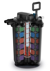 Oase Filtoclear 90000 je výkonný tlakový filter určený na filtráciu vody v záhradných jazierkach. Kombinuje mechanickú a biologickú filtráciu s účinnou UV-C lampou, ktorá pomáha eliminovať zelený zákal spôsobený riasami a udržiava vodu v jazierku číru.